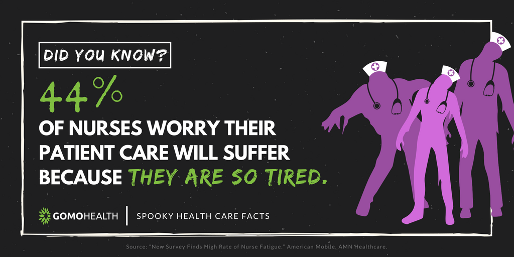 44 percent of nurses worry their patient care will suffer because they are so tired. (source) Job burnout is classified by exhaustion, alienation from work-related activities and reduced performance. Learn how to combat nurse and employee burnout by clicking here.